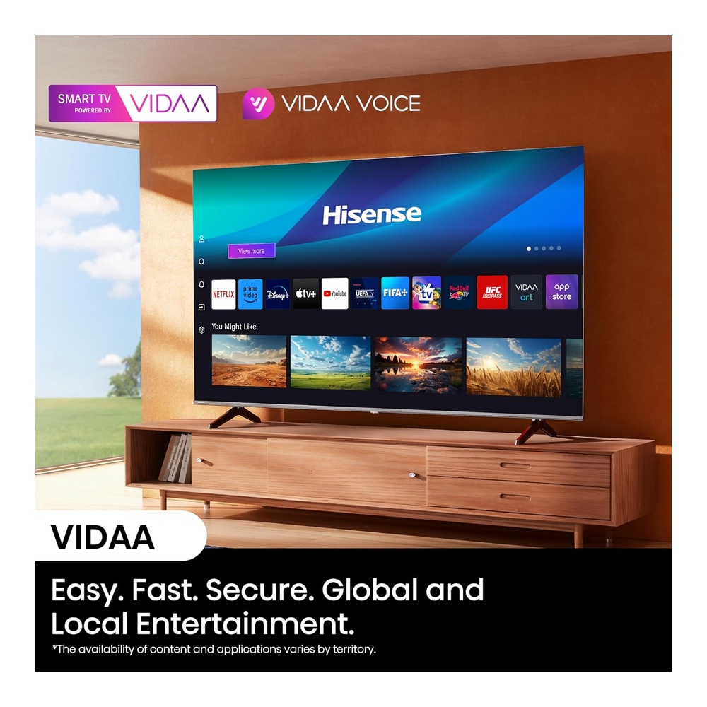 75-inch Smart TV, 4K UHD,60HZ, VIDAA OS, Product dimensions 7.9D x 167.6W x 96.5H centimeters75E6N