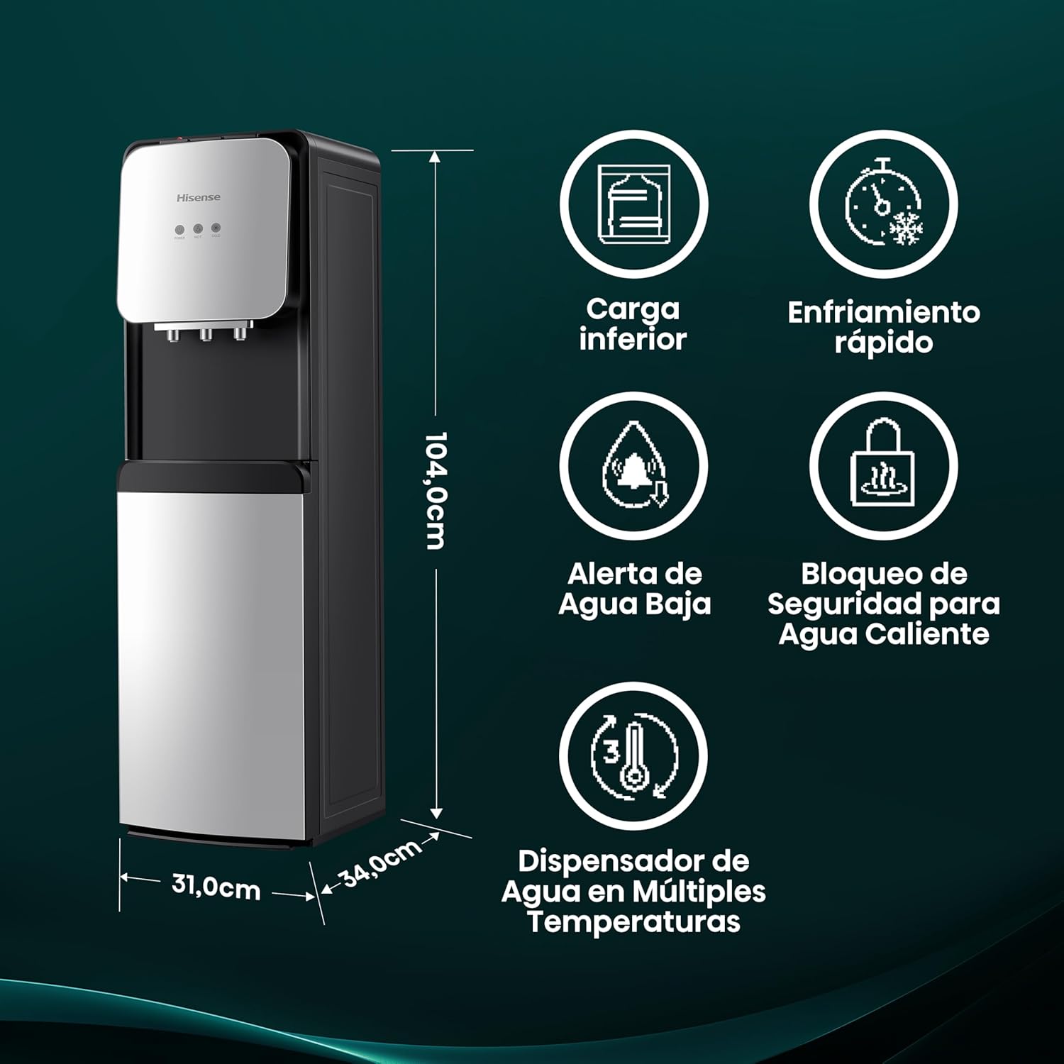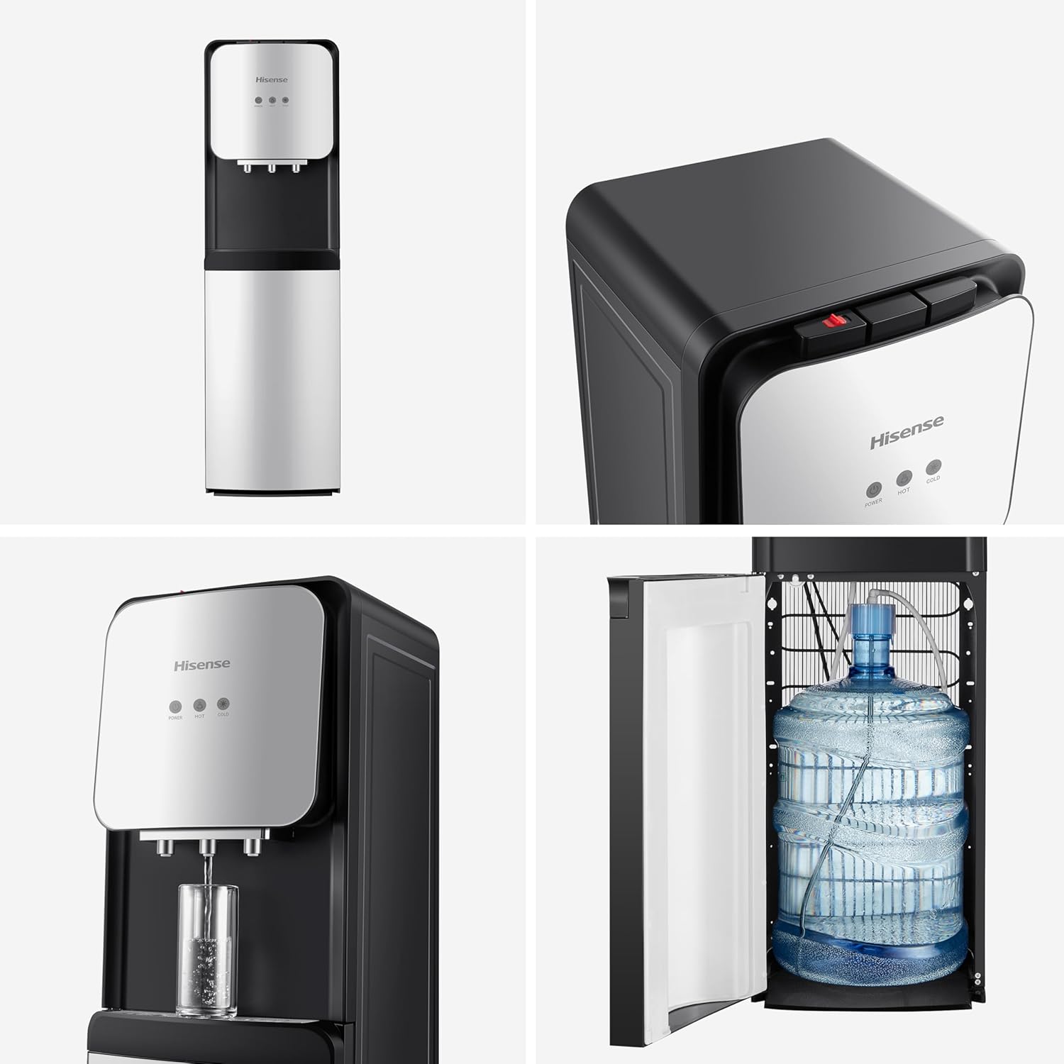 - Bottom Load Design: No more heavy lifting! Slide the water bottle into the bottom compartment.